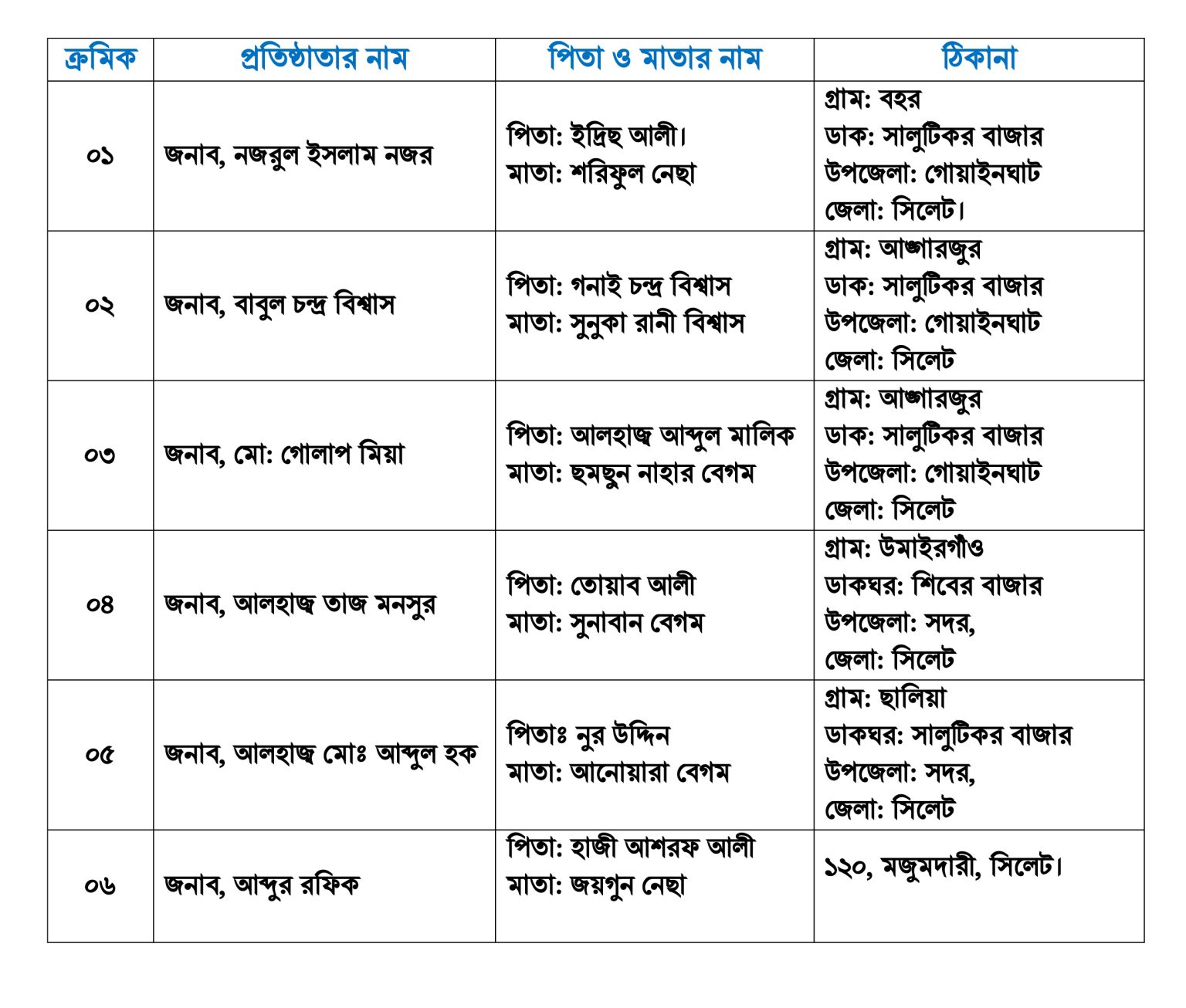 সালুটিকর কলেজের প্রতিষ্ঠাতা সমস্যবৃন্দ